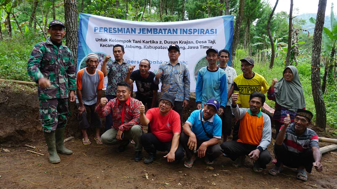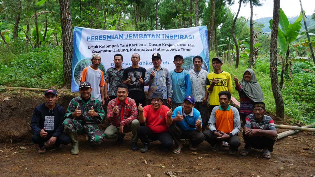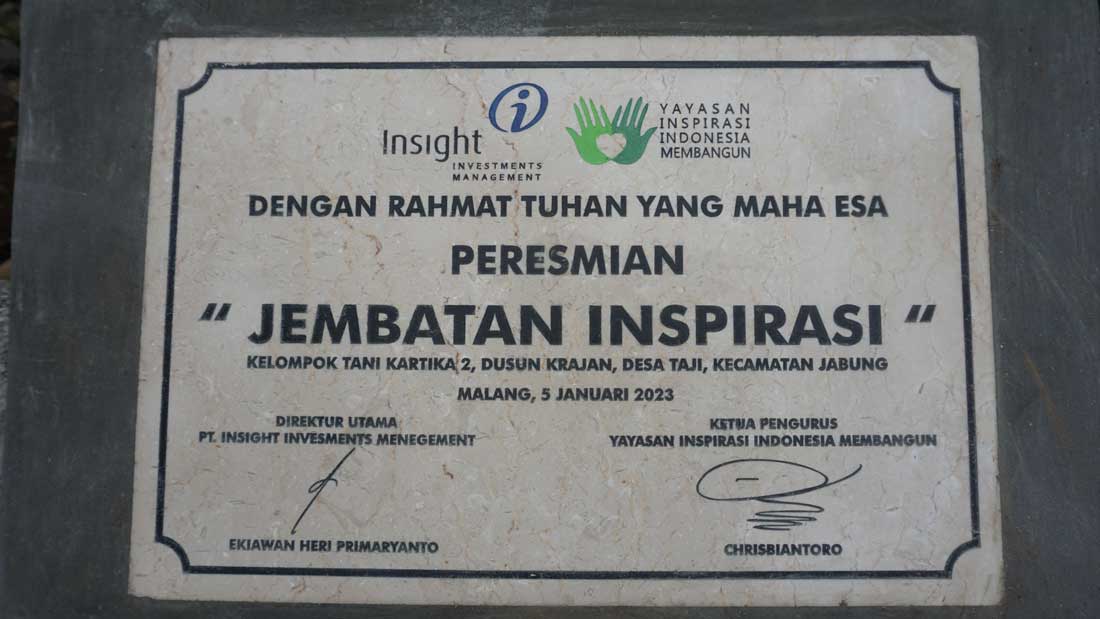 Yayasan Inspirasi Indonesia Membangun (YIIM) didukung oleh PT. Insight Investments Management (INSIGHT) pada hari Kamis tanggal 5 Januari 2023 meresmikan proyek pembangunan jembatan penghubung utama bernama ‘Jembatan Inspirasi’ bagi para petani kopi dan sektor pertanian lainnya yang tergabung dalam Kelompok Tani Kartika II di wilayah lereng Gunung Bromo di Dusun Krajan, Desa Taji, Kecamatan Jabung, Kabupaten Malang, Provinsi Jawa Timur.