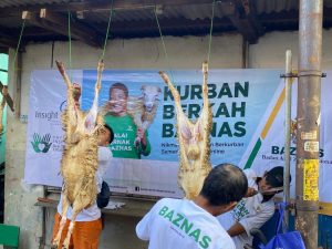 Pemberian bantuan hewan Qurban kepada masyarakat di tiga wilayah dibagikan kepada masyarakat di wilayah Kampung Baru Jl Z No. 33 RT 008/04 kelurahan Sukabumi Kecamatan Kebon Jeruk Jakarta barat berlokasi di Musholla An’Niimah telah dilakukan penyembelihan 3 ekor kambing, wilayah kedua bantuan penyembelihan daging Qurban berlokasi di Kantor BAZNAS Provinsi Jawa barat Jl. Soekarno hatta No.458, Batununggal Kecamatan Bandung kidul, kota Bandung Jawa barat telah dilakukan penyembelihan 3 ekor kambing Penyaluran hewan Qurban untuk wilayah ke tiga berlokasi di Balai ternak Bantul Jl. Padukuhan Srunggo 2 Kelurahan Selopamioro, Kepanewon imogiri Bantul Yogyakarta, telah dilakukan penyembelihan 2 ekor kambing.