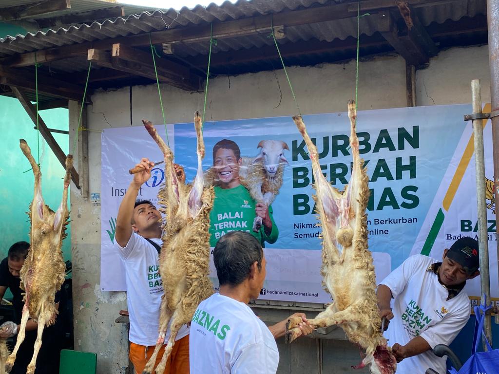 Pemberian bantuan hewan Qurban kepada masyarakat di tiga wilayah dibagikan kepada masyarakat di wilayah Kampung Baru Jl Z No. 33 RT 008/04 kelurahan Sukabumi Kecamatan Kebon Jeruk Jakarta barat berlokasi di Musholla An’Niimah telah dilakukan penyembelihan 3 ekor kambing, wilayah kedua bantuan penyembelihan daging Qurban berlokasi di Kantor BAZNAS Provinsi Jawa barat Jl. Soekarno hatta No.458, Batununggal Kecamatan Bandung kidul, kota Bandung Jawa barat telah dilakukan penyembelihan 3 ekor kambing Penyaluran hewan Qurban untuk wilayah ke tiga berlokasi di Balai ternak Bantul Jl. Padukuhan Srunggo 2 Kelurahan Selopamioro, Kepanewon imogiri Bantul Yogyakarta, telah dilakukan penyembelihan 2 ekor kambing.