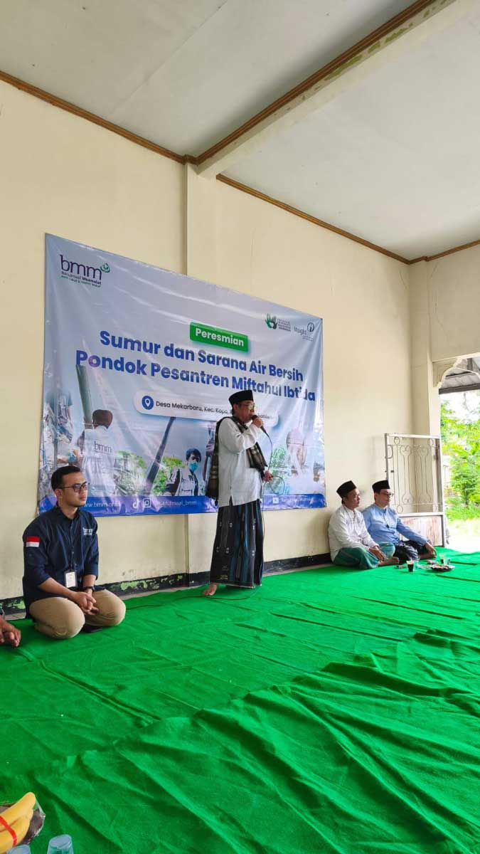 Proses pengerjaan sumur air bersih dimulai pada tanggal 12 November 2024 dan selesai pada tanggal 19 Desember 2024. Yayasan Inspirasi Indonesia Membangun bersama Yayasan Baitulmaal Muamalat dan didukung oleh PT. Insight Investments Management telah memberikan bantuan sumur air bersih yang terdiri dari toren air beserta menara toren dan mesin air, MCK dengan ukuran 5×3 meter serta tempat wudhu dengan 3 kran air. Untuk perawatan sumur bor baik mesin dan pasokan listrik, akan menjadi tanggung jawab pengurus pondok pesantren.